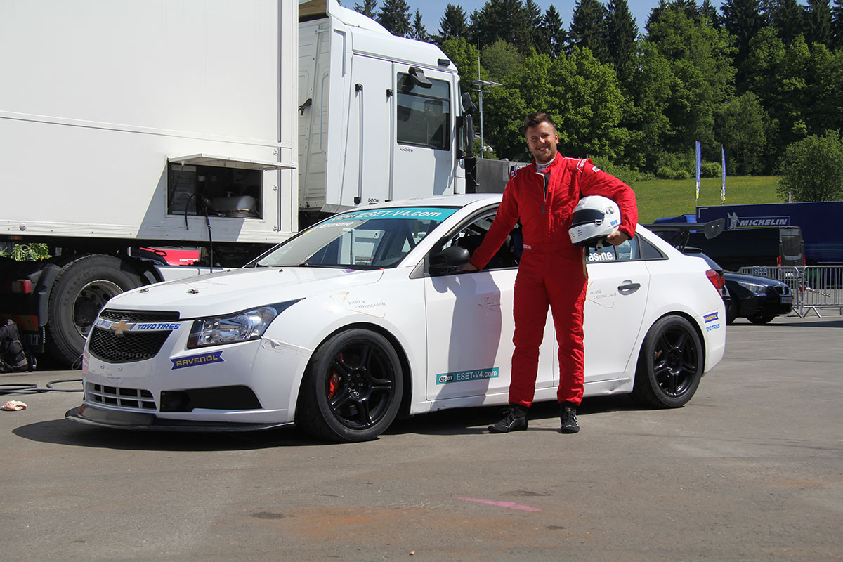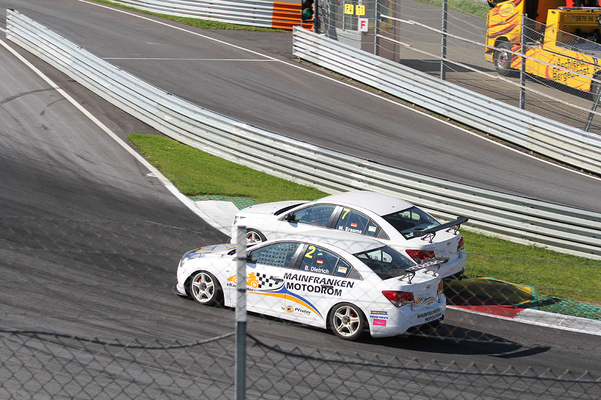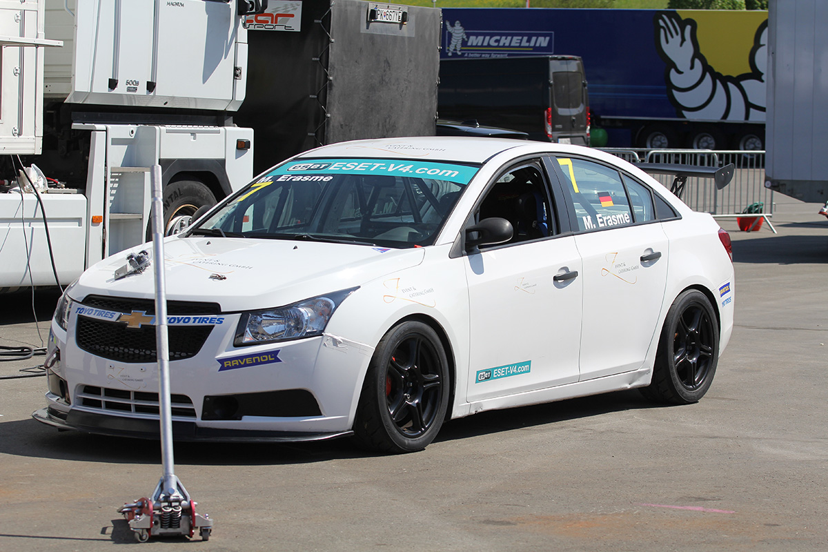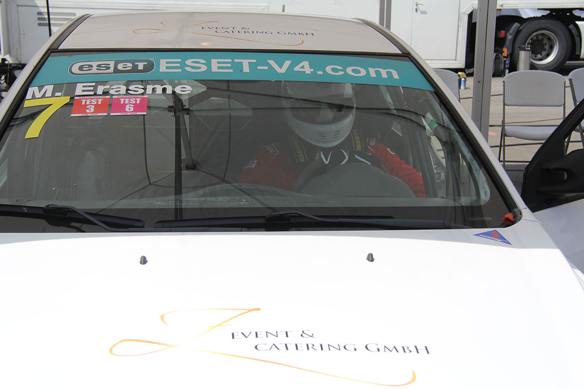 Das Team tauschte die Rennkupplung kurzerhand aus und dachte das Problem sei damit behoben.Sodann ging es am folgenden Morgen ins Qualifying, welches Marius mit 30 Tausendstel Rückstand mit einem grandiosen 2. Startplatz in Reihe 1 beendete. Voller Hoffnung ging es ins erste Rennen. Nach harten aber fairen Kämpfen zu Beginn des Rennens konnte Marius die Spitze übernehmen und seine Führung Runde für Runde ausbauen. Sein härtester Konkurrent erlitt eine 5 Sekundenstrafe und wurde wegen deren Missachtung mit einer schwarzen Flagge bestraft und sodann Disqualifiziert. Zu diesem Zeitpunkt führte Marius das Rennen bereits mit mehreren Wagenlängen Vorsprung an bis ihn 10 Minuten vor Schluss Getriebeprobleme zwangen das Auto abzustellen. Dies wäre ganz sicher sein erster Rennsieg im Tourenwagen gewesen, doch der Technikteufel gönnte es ihm nicht.